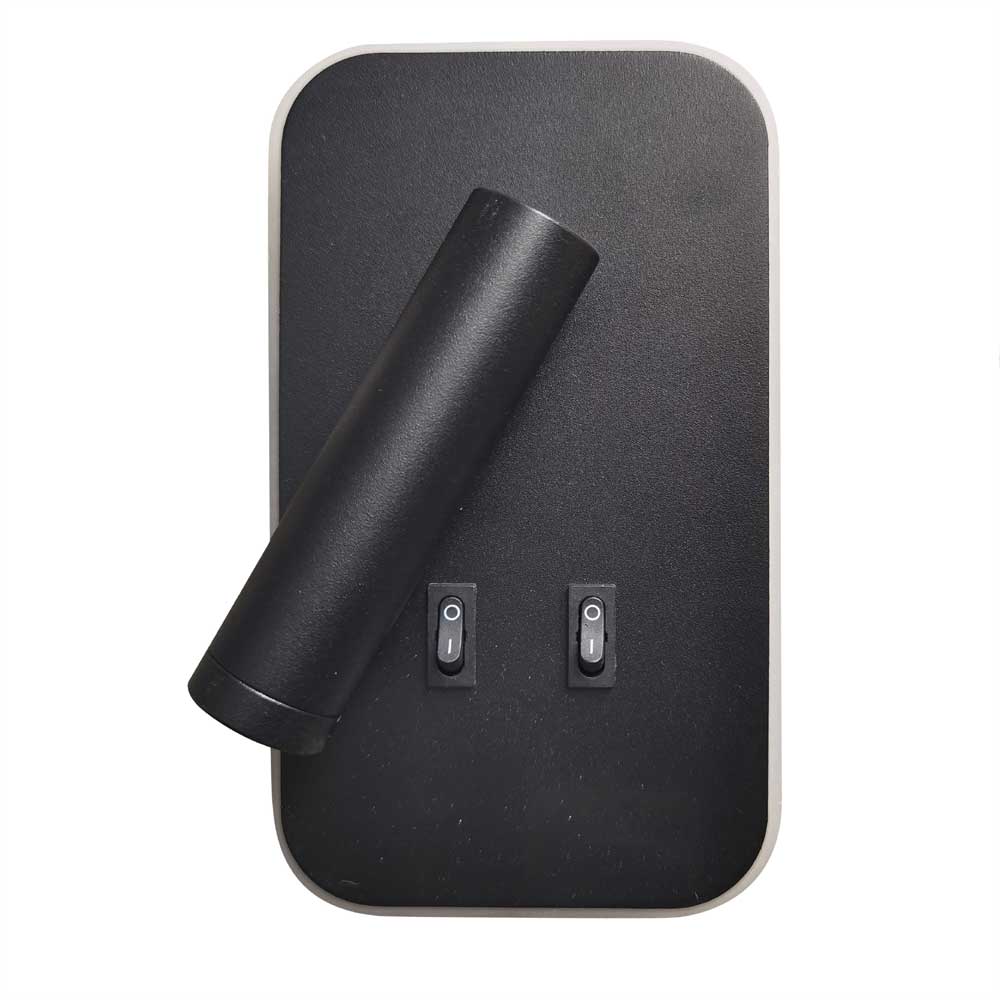 ref: 008617Aplique LED 3+6W de luz indirecta fabricado en aluminio, terminado en negro. 3000K, 725 Lumen. Dispone de foco LED direccionable.