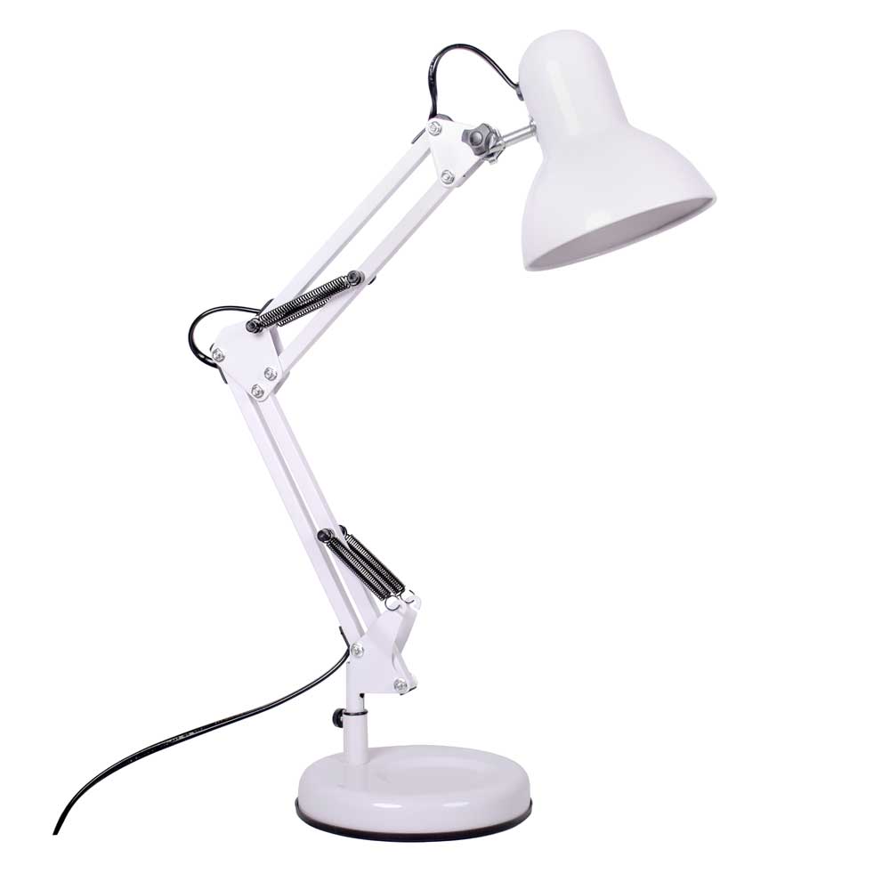 Dentro de la sección Flexos, les presentamos el artículo sobremesa ANTIGONA. Las dimensiones de este modelo de sobremesa son de 15 cm de largo, 12,5 cm de ancho, altura ajustable, en blanco. Este modelo necesita 1 bombilla E27.
