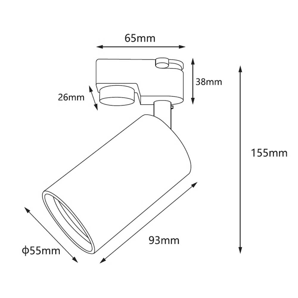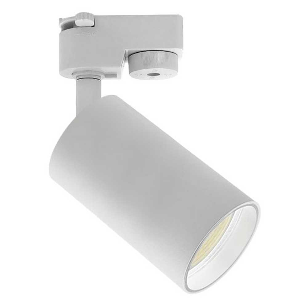 Foco para carril monofásico, para bombilla GU10 , fabricado en aluminio blanco. Bombilla no incluida.