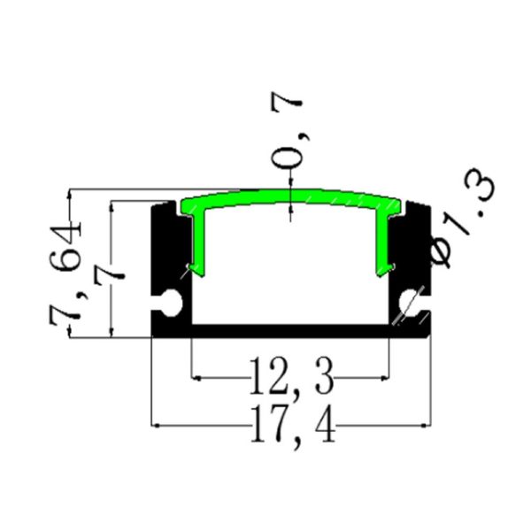 Este perfil es el lienzo perfecto para tu creatividad. Con aplicaciones en muebles, barandillas, vitrinas y más, podrás dar vida a tus ideas y embellecer tus espacios con una iluminación única. Fabricado en aluminio anodizado y aleación de aluminio 6063, este perfil garantiza durabilidad y resistencia a lo largo del tiempo. Una inversión segura para tus proyectos de iluminación. Con medidas de alto 7,64 mm, ancho 17,4 mm y un difusor de 0,7 mm de grosor, este perfil se integra sin esfuerzo en cualquier entorno, aportando estilo y funcionalidad.