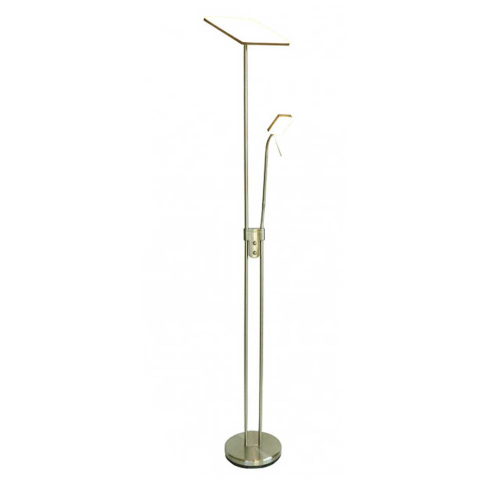 Pie de salón BETELGEUSE realizado en metal color CUERO. Dispone de tecnología LED INTEGRADA. Su potencia en la luz principal es de 18 watios, 1800 lúmenes y la potencia de luz en el lector es de 5 watios y 500 lúmenes, con una temperatura de luz de 4000K, Blanco Natural. De diseño moderno y original, ideal tanto para decorar en salones y salas de estar como en centros de trabajo y salas de espera, con lector articulable, posibilitando dirigir la luz directa hacia el punto que más interese, con dos encendidos independientes e intensidad de luz regulable. Tiene unas dimensiones de 128×25,5×25,5 centímetros. Modelo también disponible en color níquel.