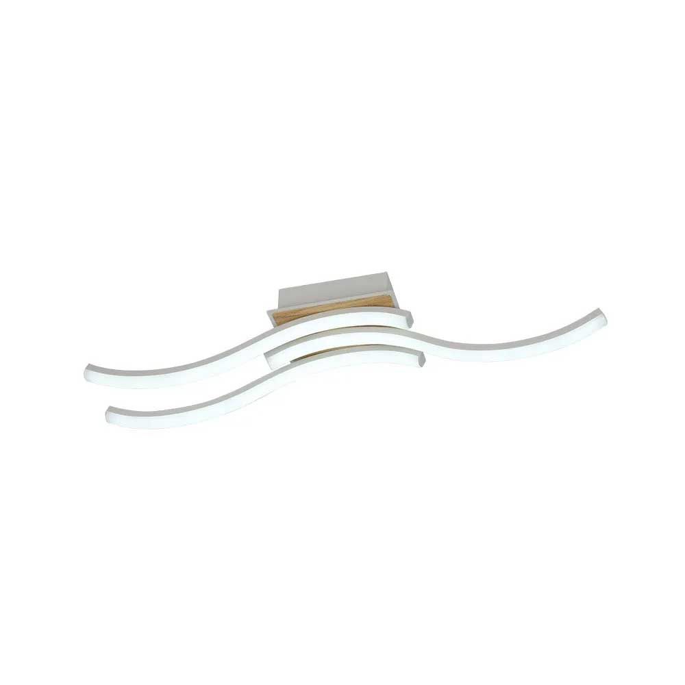Plafón de la serie MURRAY en color BLANCO/HAYA. Realizado en metal, aluminio y acrílico. De diseño futurista muy moderno a la par que elegante, se aprecian tres ondas de luz sobre una pletina en madera, resultando un bonito juego lumínico. Ideal tanto para salas, salones y dormitorios como para cocinas y espacios de trabajo, dando sensación de profundidad, iluminan a la vez que decoran la estancia, el diseño de luces que presentan lo hacen el centro de la habitación que iluminan. Posee tecnología LED INTEGRADA, proporcionando un gran ahorro, con una potencia de 48 vatios y 5280 lúmenes, con TRES TEMPERATURAS SELECCIONABLES DE LUZ, 3000-4000-6500ºK (luz cálida, natural y blanco frío) pudiendo elegir en cada momento la que mejor se adapte a la actividad a realizar. Viene con MANDO A DISTANCIA incluido, REGULABLE EN INTENSIDAD y MEMORIA de color. Tiene unas dimensiones de 9,5x62x11 centímetros. Disponible en esta serie con tres diseños diferentes y todos en blanco/haya o en negro/madera, para elegir las combinaciones que mejor se adapten a su decoración.