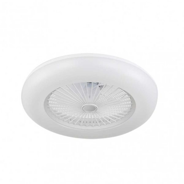ref: 770021-ABLDCLámpara de plafón con ventilador, luz led y mando a distancia incluido Modelo IKARO DC BLANCO. Simula una lámpara de plafón normal que integra un ventilador con las aspas ocultas. Es ideal para techos bajos, estancias pequeñas y dormitorios infant…